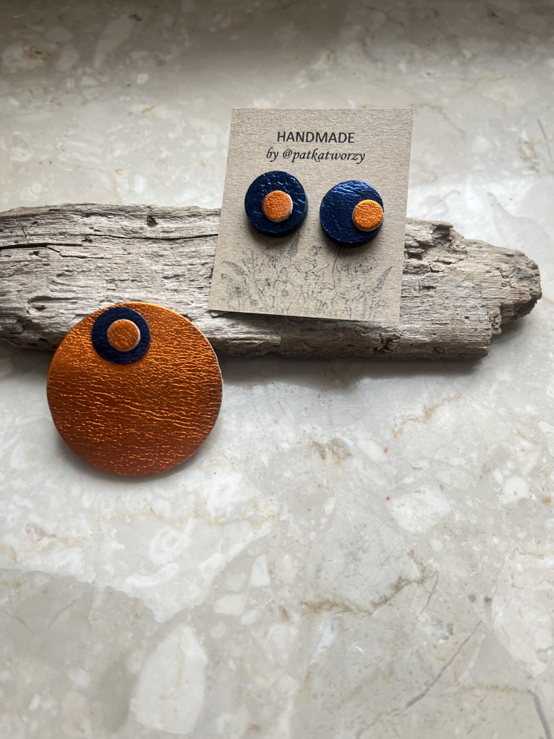 Zestaw biżuterii handmade stworzony ze skóry w duchu zero waste.
