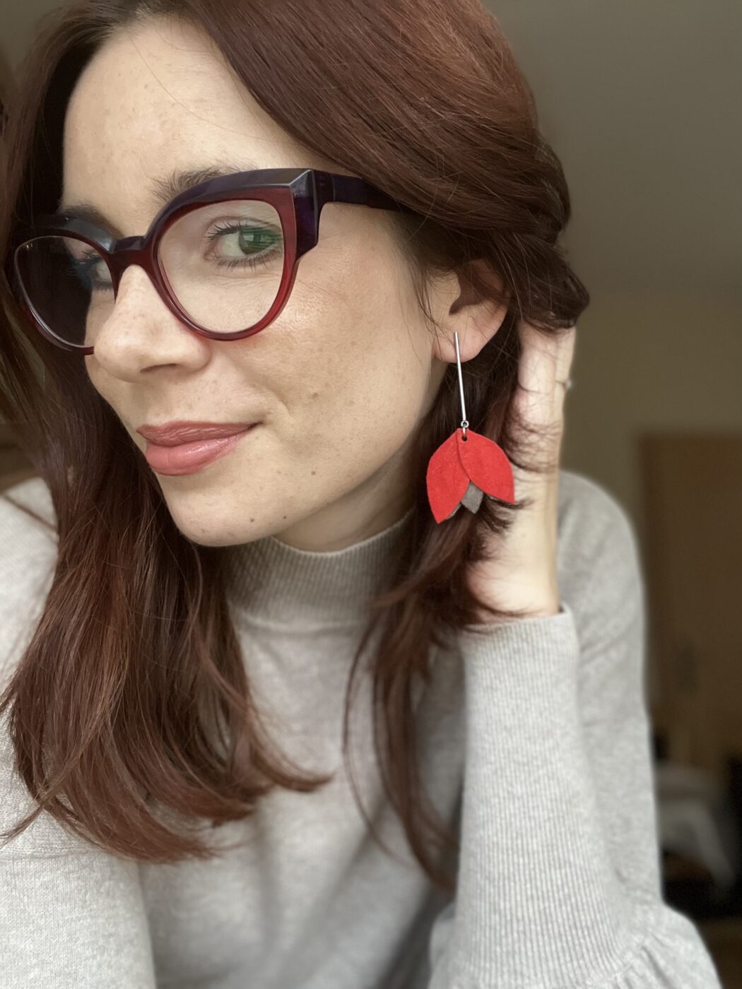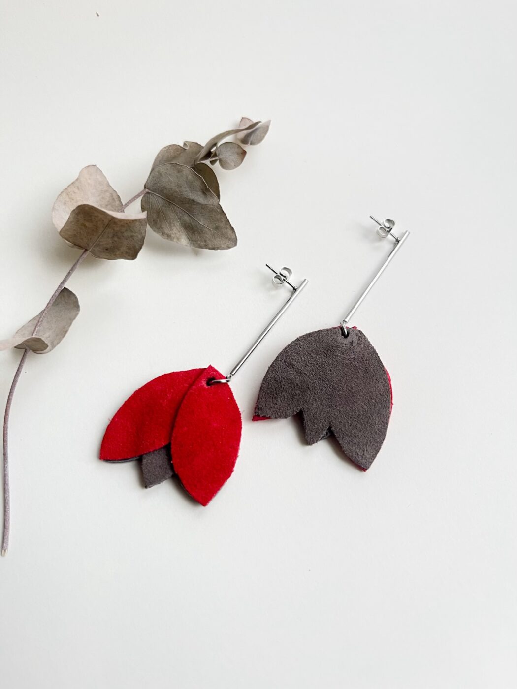 Kolczyki na słupkach kwiaty czerwone