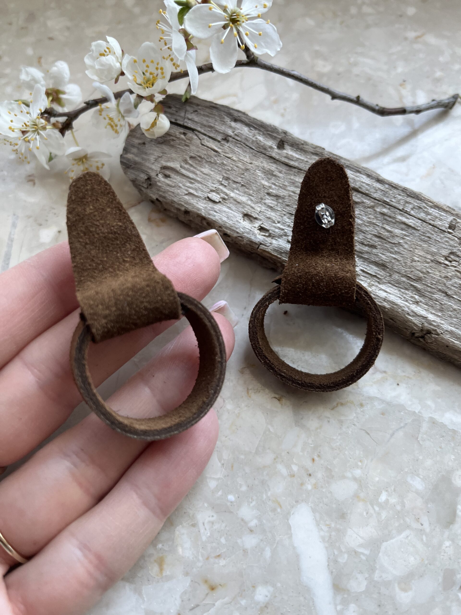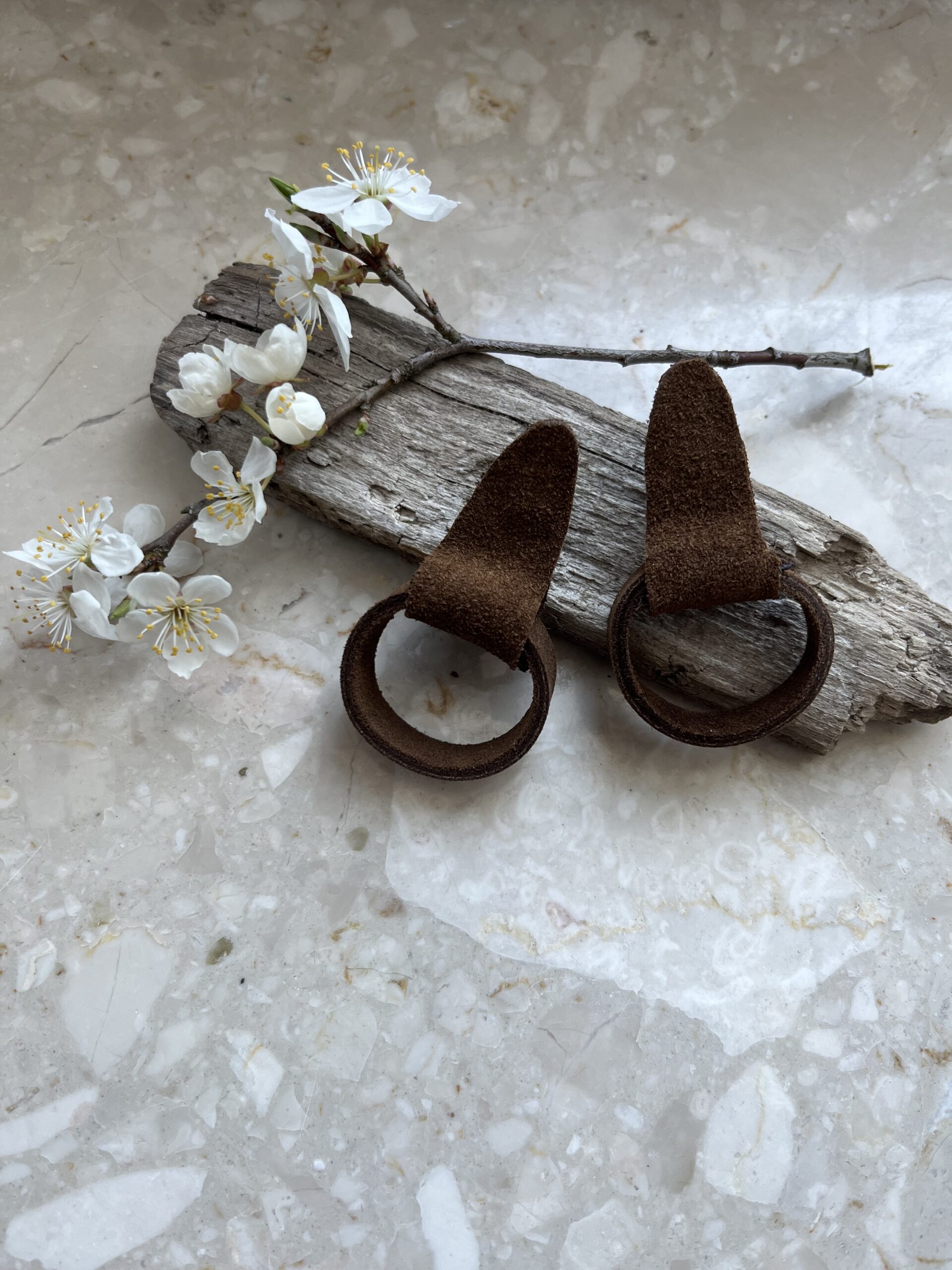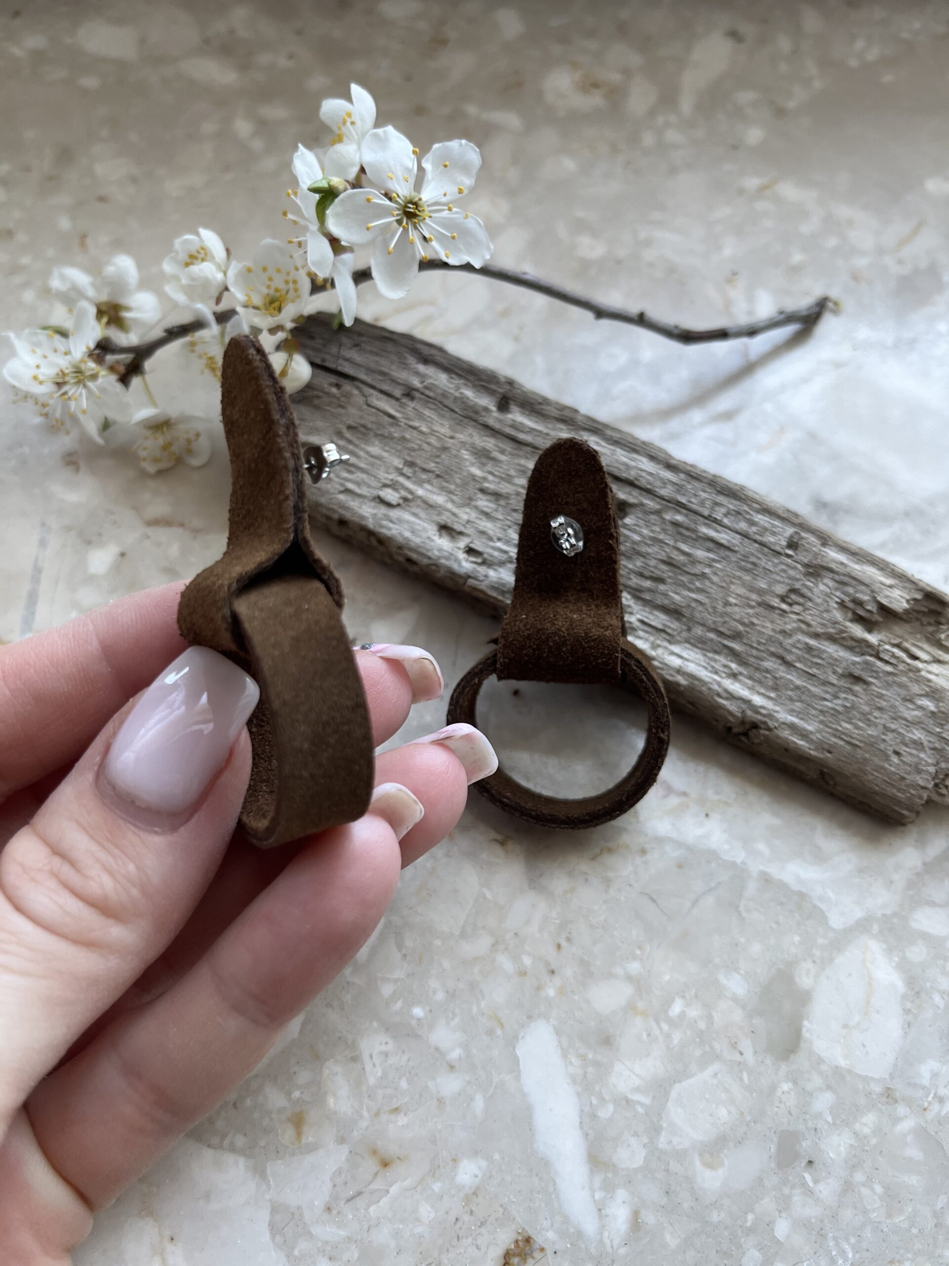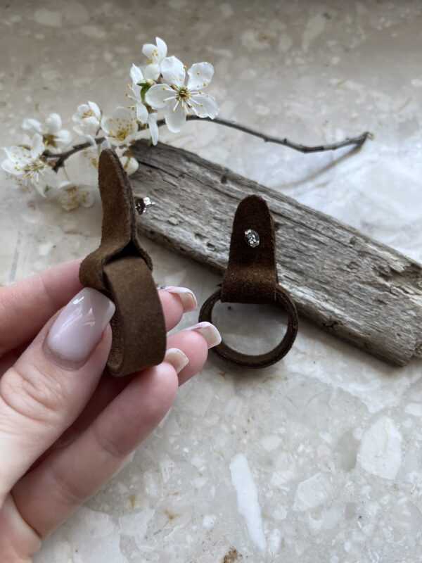Wykonany z włoskiej skóry welurowej, w duchu zero waste (z resztek skórzanych).