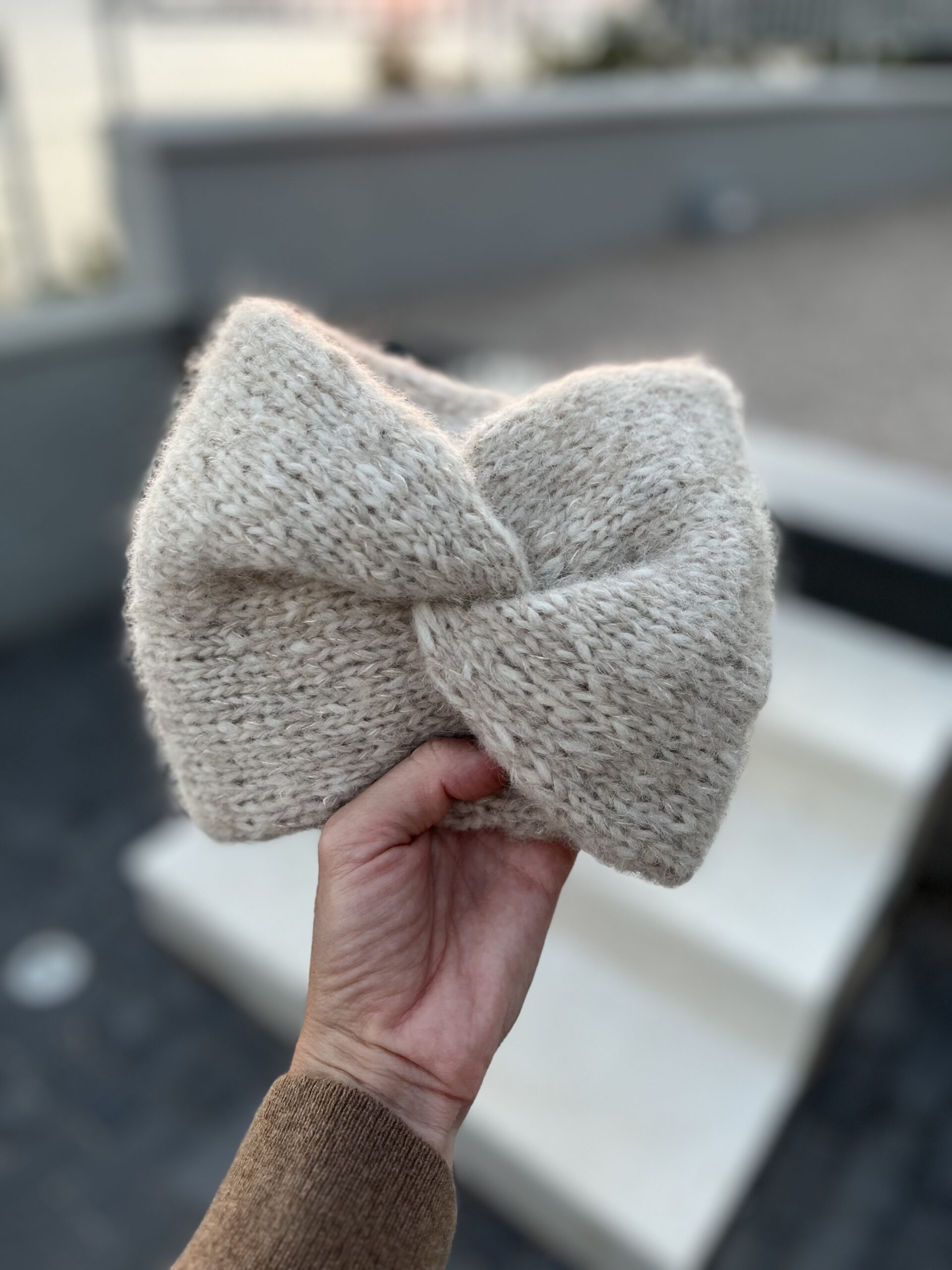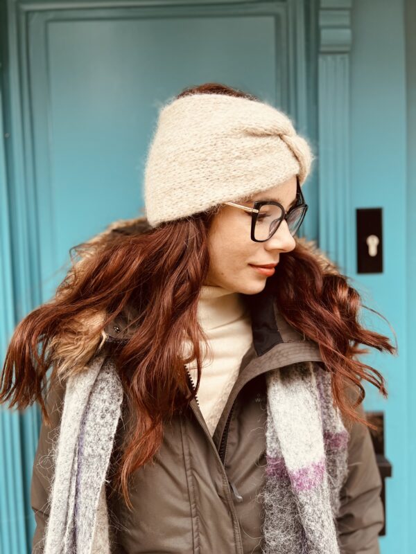 Opaska jest dziergana podwójnie na drutach metodą na około, dzięki czemu zapewni komfort użytkowania.