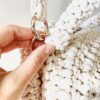 I druga, długa płaska – umożliwia przewieszenie torby przez ramie lub założenie na ramie. Dwie raczki są zapinane na karabińczykach ( ten model ma złote karabińczykiem) co umożliwia ich wygodną konfiguracje i dopasowanie ich do swoich potrzeb.