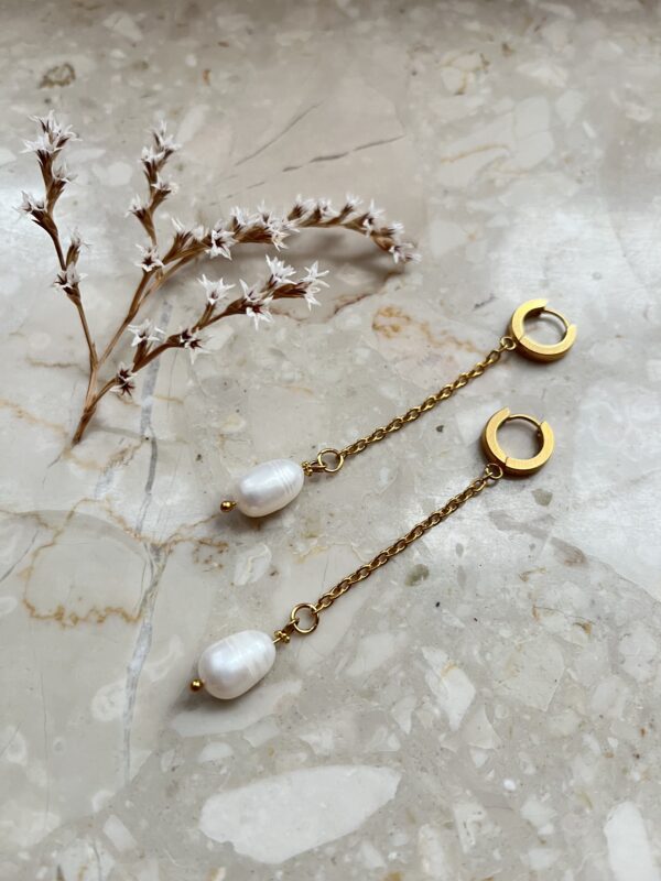 Efektowne i eleganckie kolczyki wykonane w całości ze stali chirurgicznej, wykończone perełką naturalną hodowlaną.