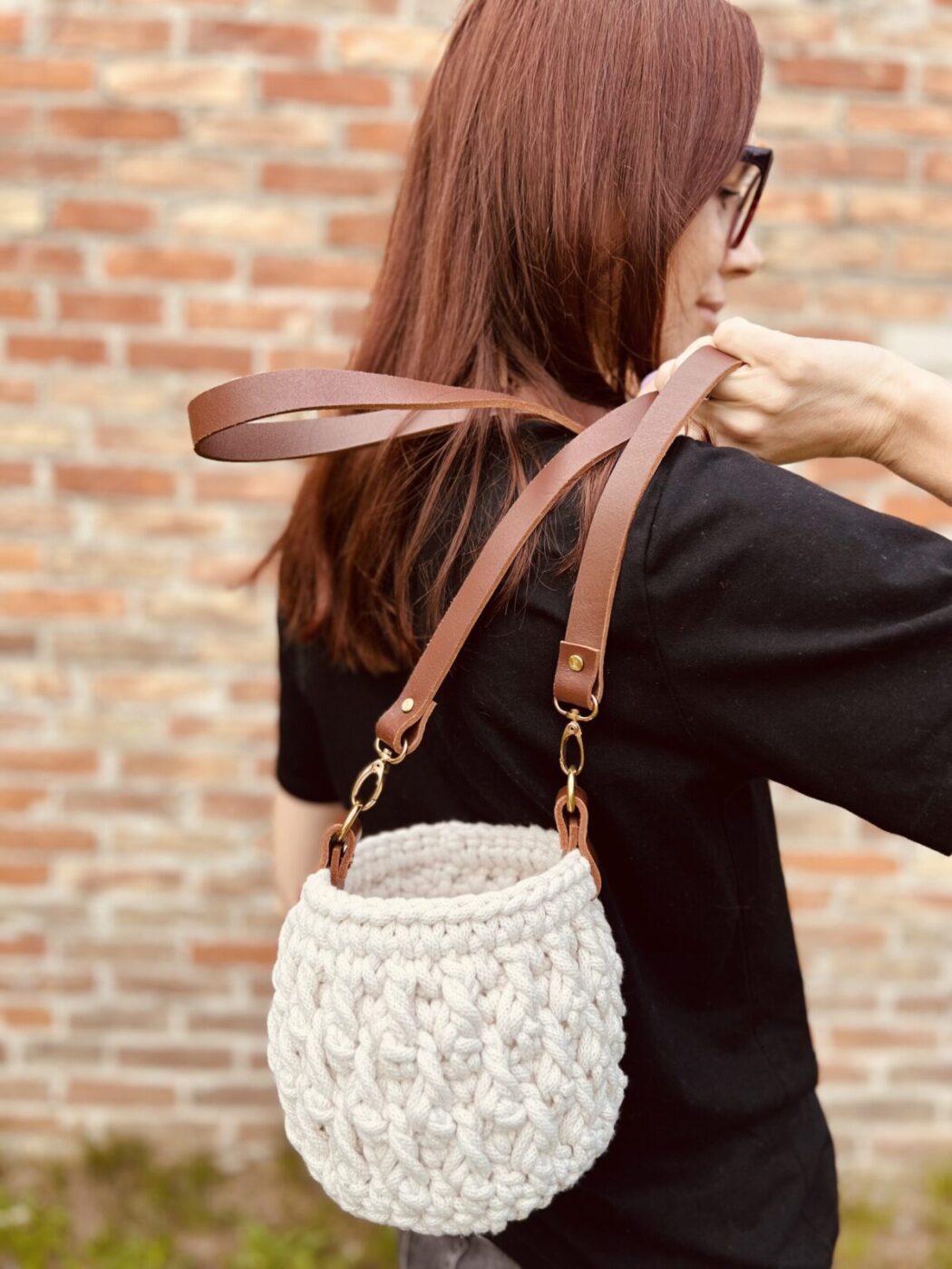 Torebka ze sznurka, kolor whisky.